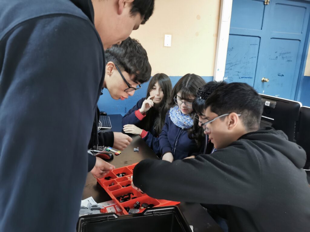 Este es uno de los grupos «Los Robotines» armando su robot en forma de cachorrito esto es una muestra del trabajo en equipo y armonia que tiene cada grupo en robótica.